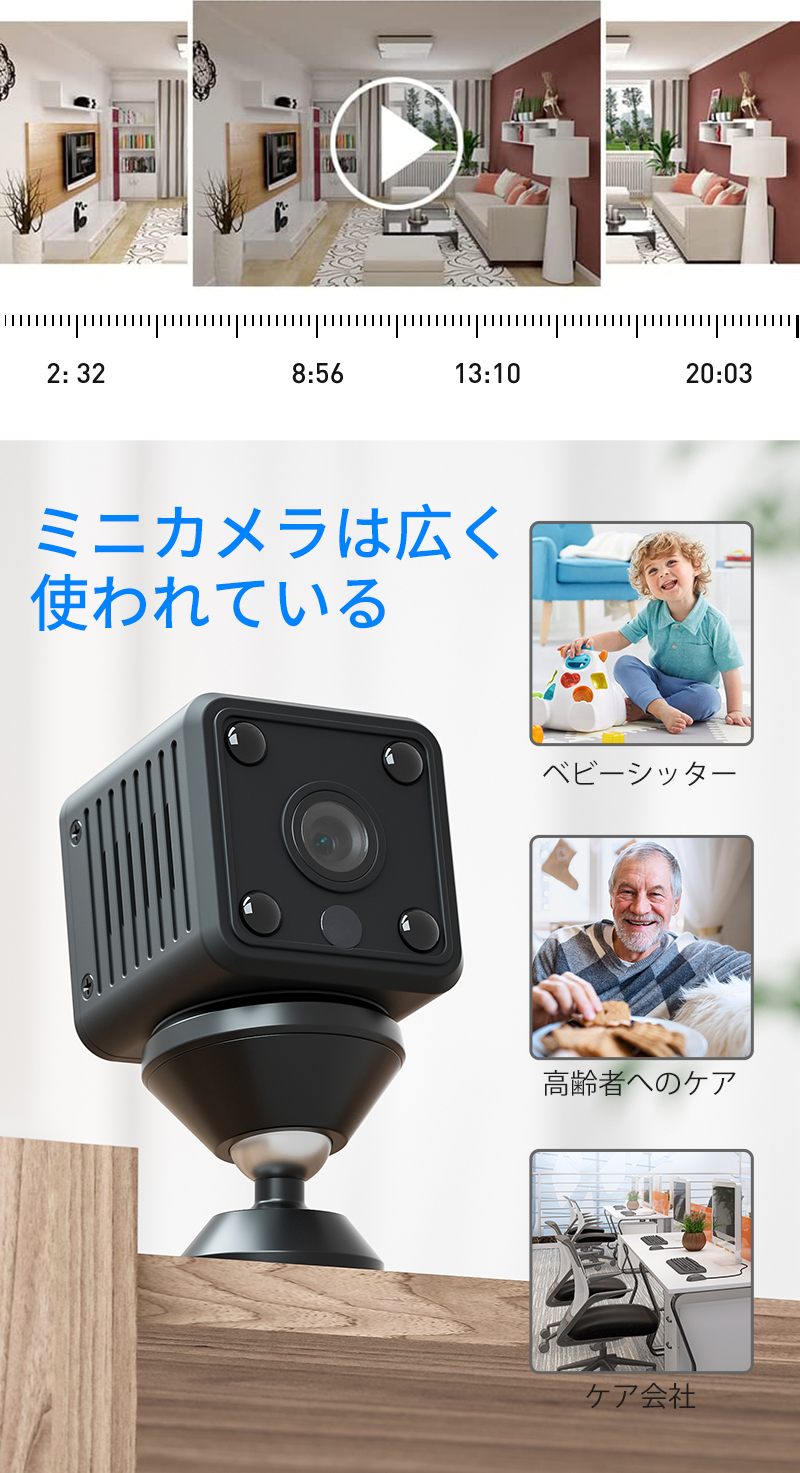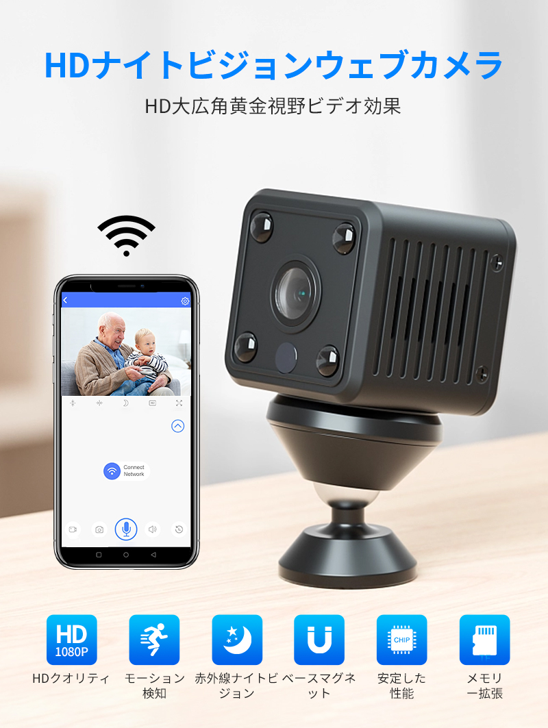 小型防犯カメラ 隠しカメラ スマホ連動 1080P 軽量 長時間録画 暗視 動体検知 室内用 家庭用 150°広角 操作簡単 MINI バッテリー内蔵 遠隔監視 工事不要 爆買