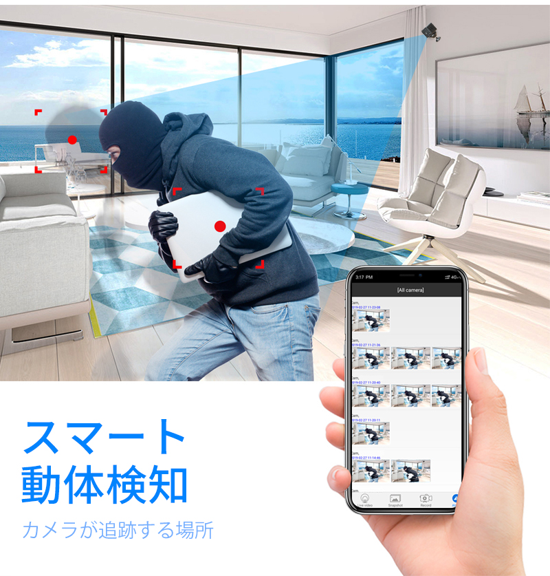 このWiFi隠しカメラには高感度の動体検知機能が搭載されており、カメラの視野内で何らかの動きがあった場合、瞬時にそれを感知して自動的にスマホと連動します。この機能は、防犯目的で非常に役立ちます。例えば、不審者が家やオフィスに侵入しようとする場合、カメラがその動きを感知し、IOS/Androidスマートフォンに警報通知を送信します。これにより、ユーザーはどこにいても状況を把握し、迅速に対処することが可能です。