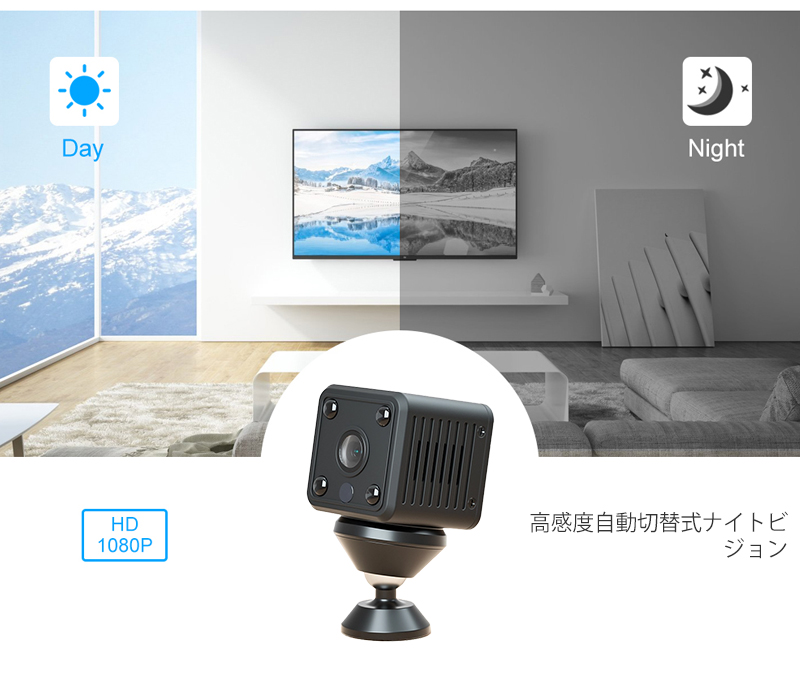 室内監視カメラ は最新設計赤外線ライトが搭載し、クリアナイトビジョン機能 夜の自動オン机能もあります(手動で切り替えることも出来る)。暗視カメラ の暗視機能をオンにすると、真っ暗な環境でも赤外線LEDライトが見えにくくなり、使いやすくなります。SDカードが挿入されている限り、SDカードは継続的に記録されます。