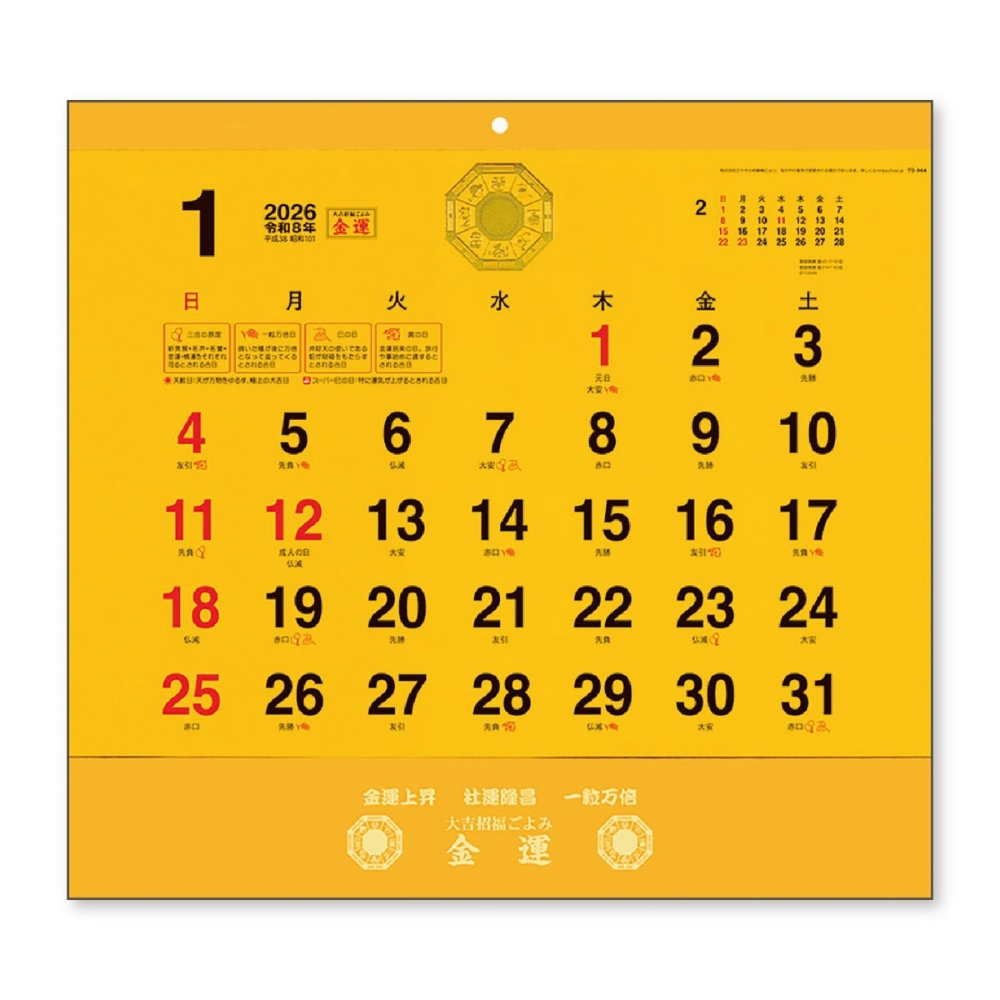 日本カレンダー 2026 金運カレンダー 壁掛け NK-8705 日曜始まり