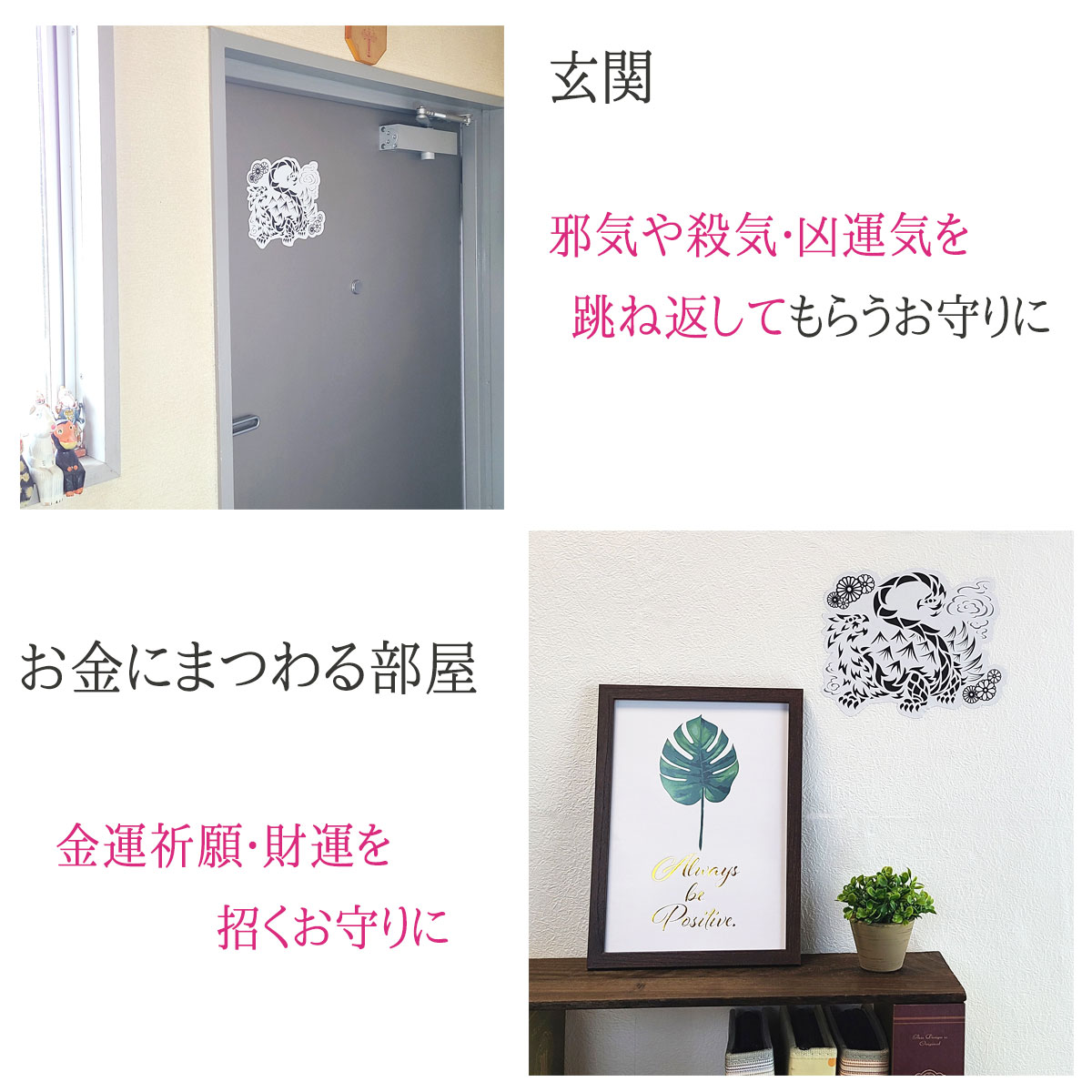 邪気や殺気・凶運気を跳ね返すお守りとして使うのであれば、玄関に飾ると良いでしょう。