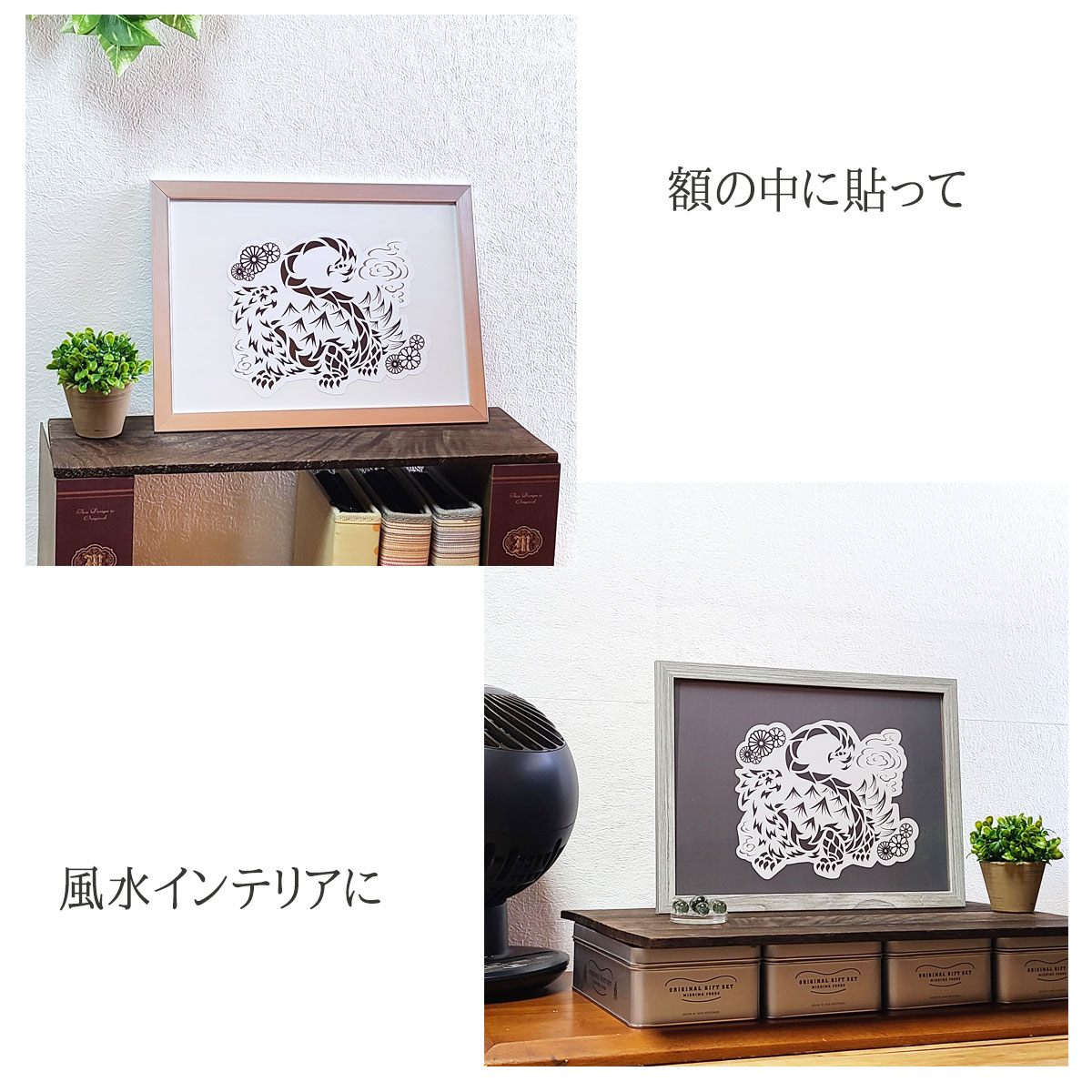 額の中に貼って、「玄武の絵」として風水インテリアとして飾ってもOKです。