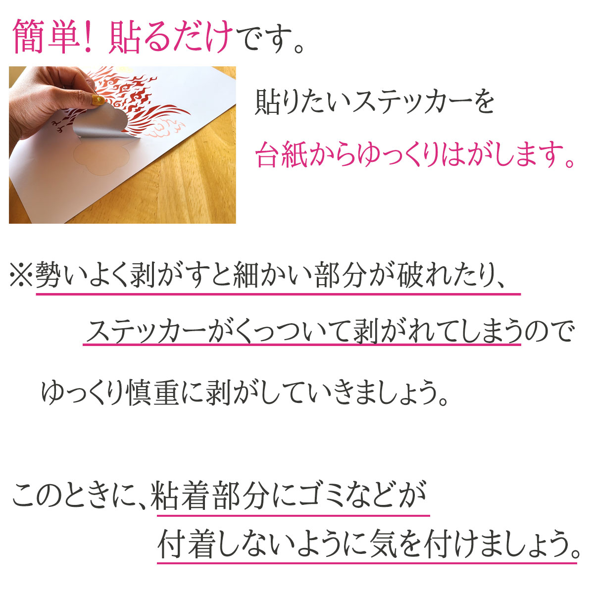 貼りたいステッカーを台紙からゆっくりはがします。